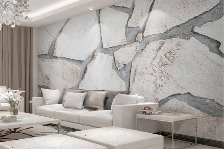 - تكسية الجدران بورق جدران أو ديكور حجري